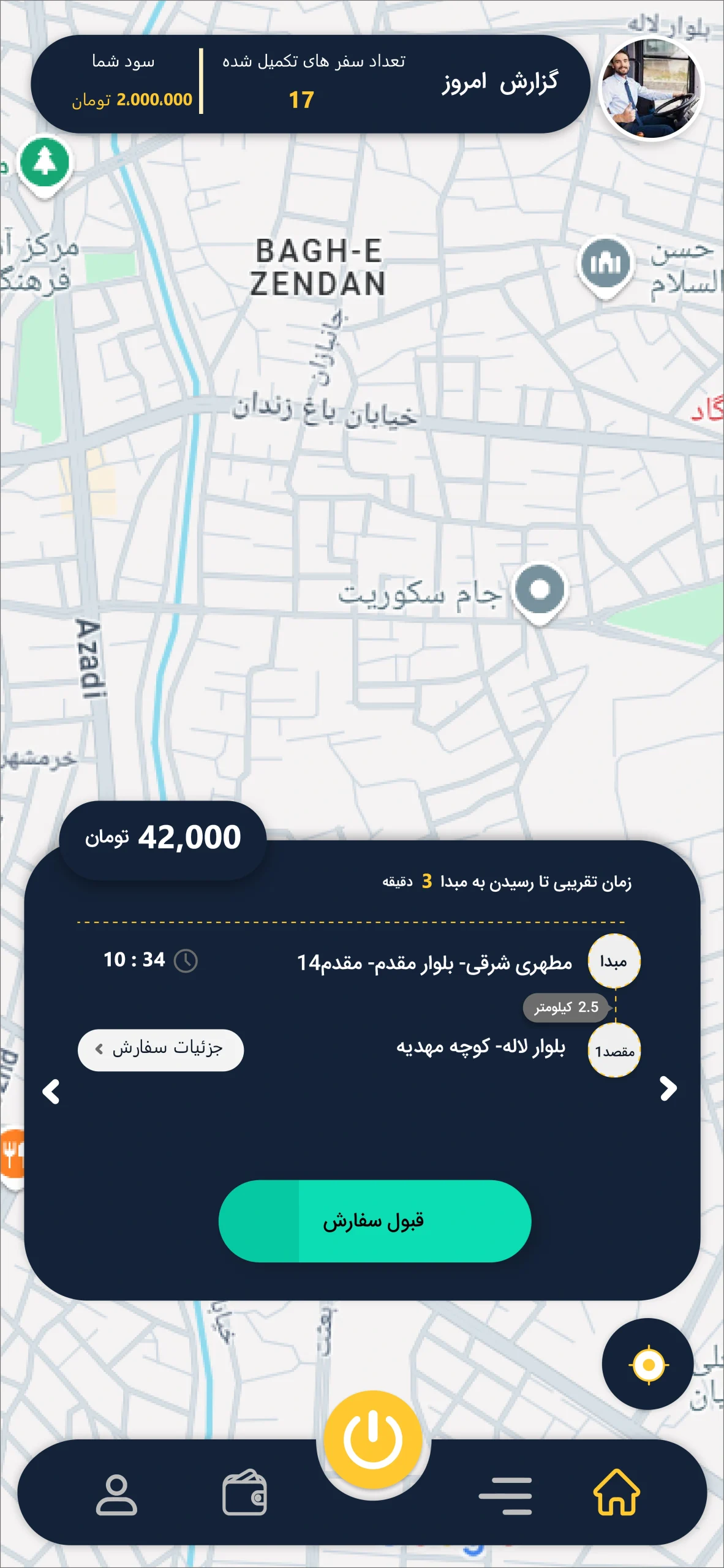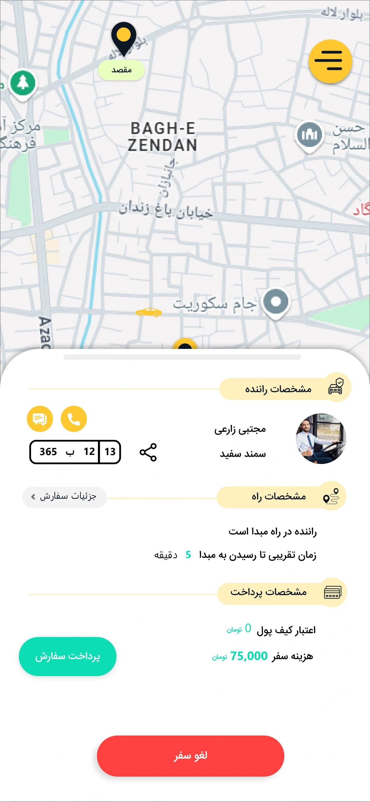 با چند لمس ساده، نزدیکترین و مناسبترین راننده به موقعیت شما پیدا میشود و سفر شما آغاز میشود.